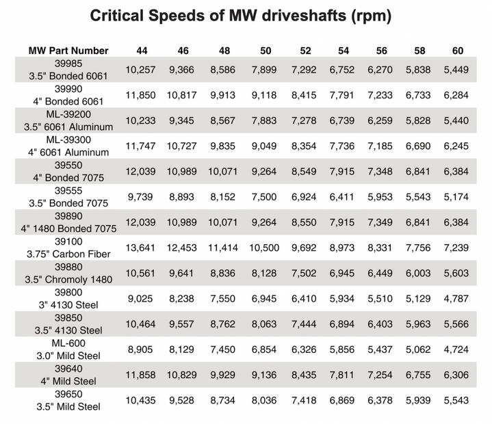 MW Masterline Aluminum Driveshafts are built from 6061 aluminum and welded. Each driveshaft is custom built to length an specifications. These driveshafts are precision built, assembled, and balanced using in house machined components.